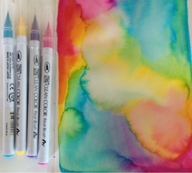 I found these cool Zig pens at Hobby Lobby yesterday and played around with them. They work like watercolor, but in brush form. The colors are vibrant and the ink is waterbase. I like them but I don't know if I love them. They aren't refillable & I think I'd rather fill my waterbrush with ink using a pipette.